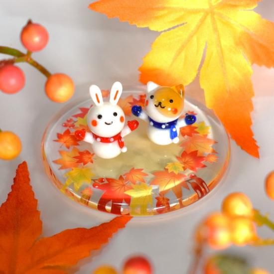 ガラスならではの透明感と、秋の彩りをぎゅっと閉じ込めた「紅葉プレート」は、もみじと