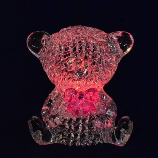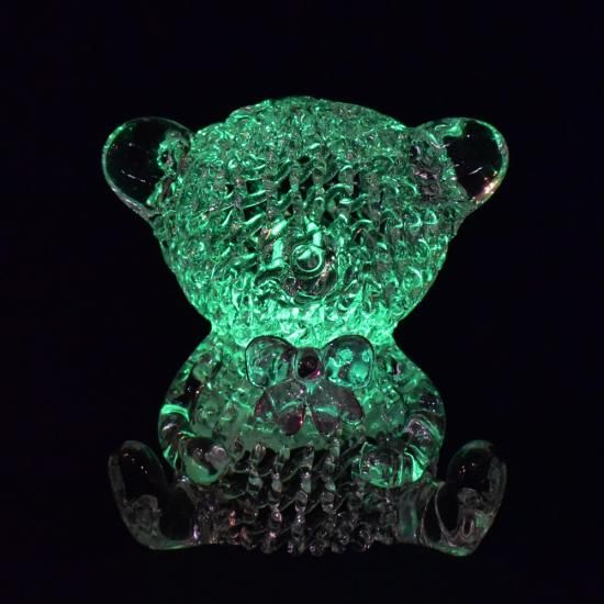 まるで宝石のように7色の光を纏うガラスのテディベア。