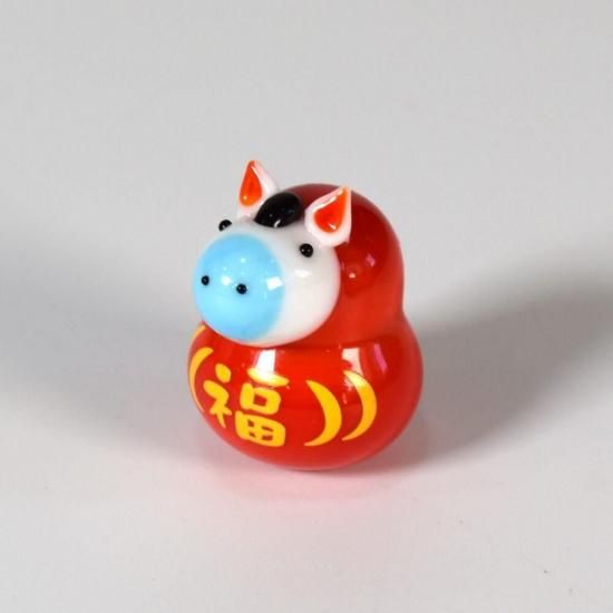 鮮やかな赤に身を包んだウマだるまさん。