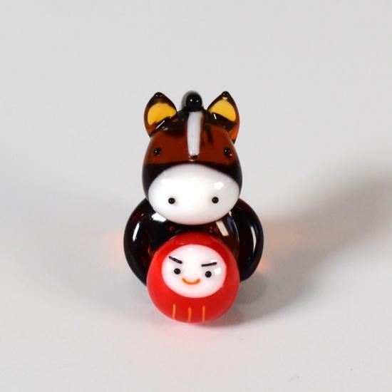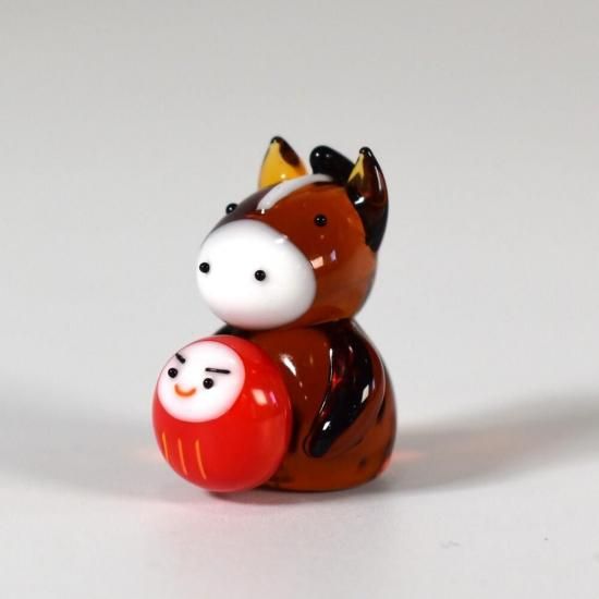 ちょっぴりおっとりした表情のおウマさんと屈託のない笑顔のダルマさん。